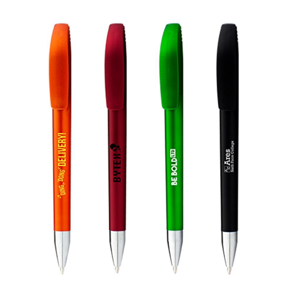 A bold and distinctive twist action plastic ballpen with colour coordinated clip and stylish sheen finish. Offers a great branding space for your brand. Black ink.